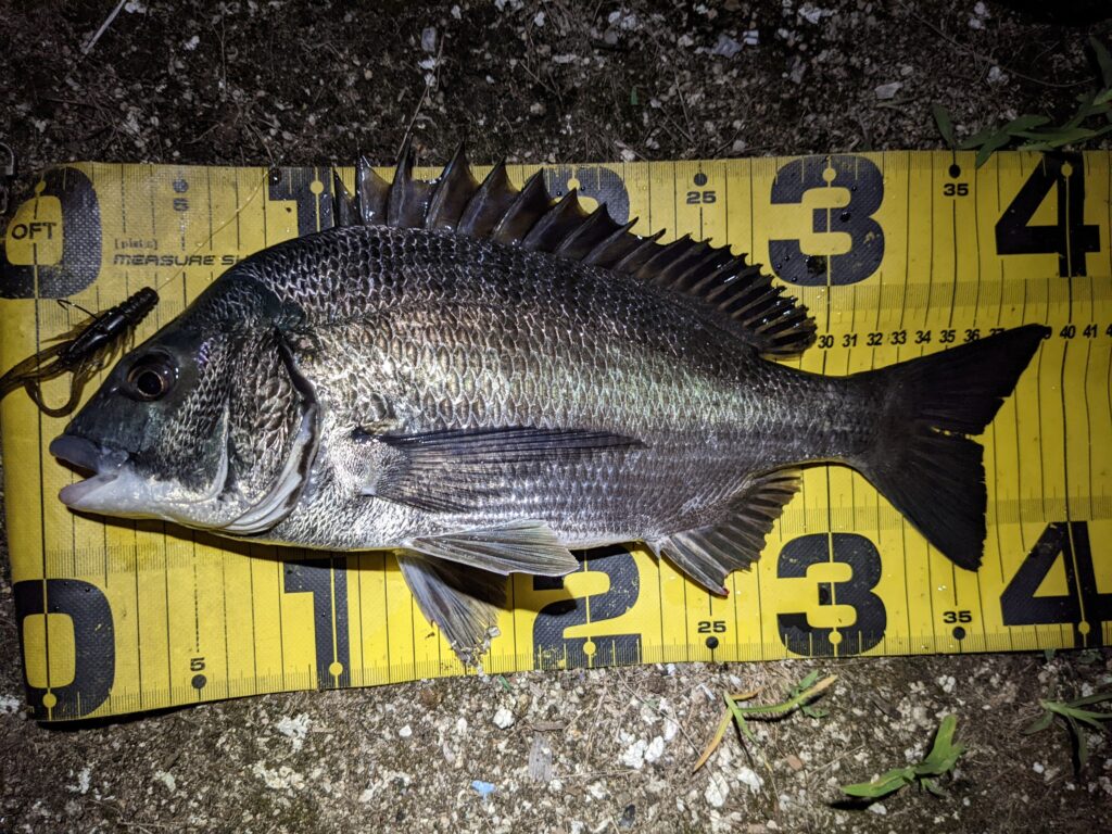 8月11日・新岡山港周辺チニングで釣ったチヌ2枚目
